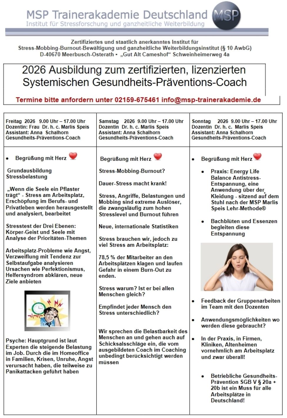 ... zur systemischen Stress-Mobbing-Burn-Out-Bewältigung am Arbeitsplatz mit zertifiziertem, lizenziertem Studien-Abschluss und Trainer-Coach-Lizenz auf Lebenszeit.